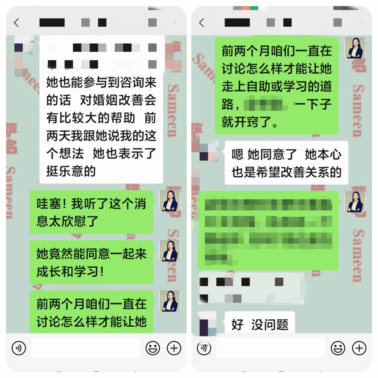 感情好起来之后,学员提出让太太也接受婚姻指导,太太乐意接受。