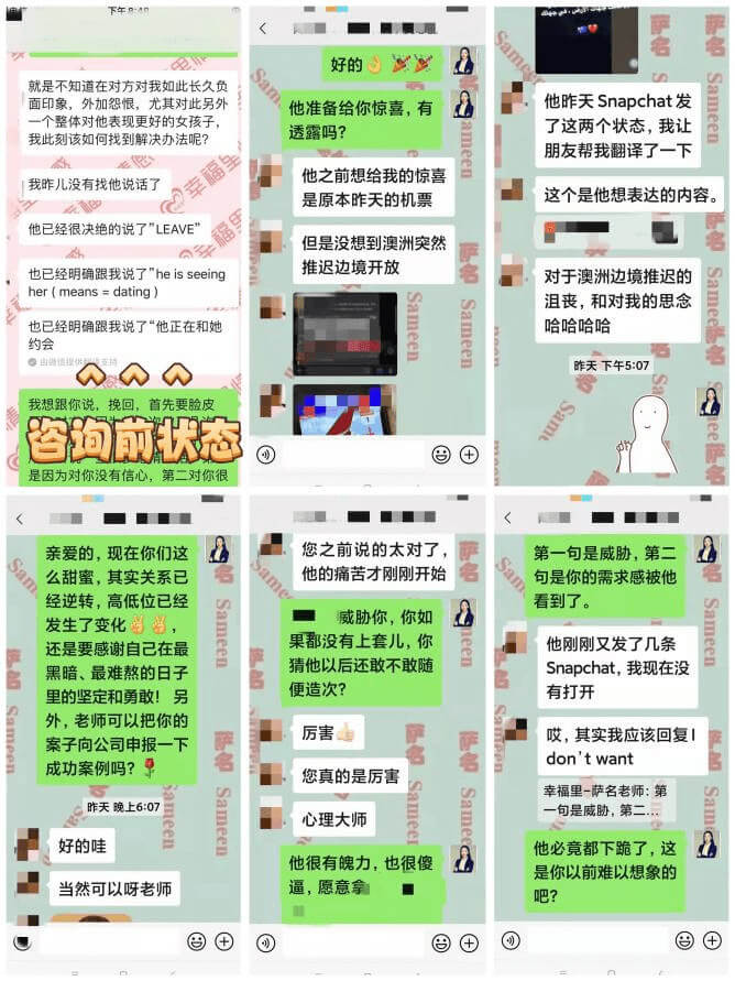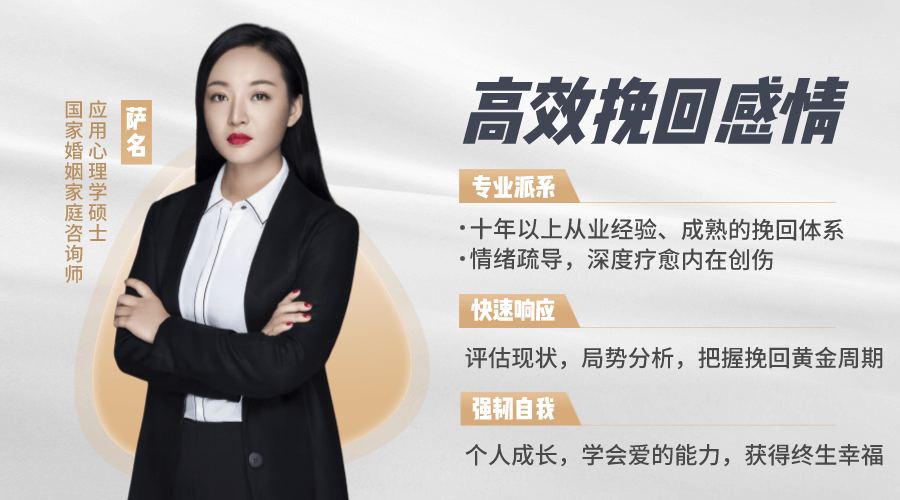 亲爱的朋友你好,我是情感导师萨名,也是国内最早一批专业情感挽救专家。在过去10年,曾帮助超过上千个学员成功挽救感情。如果你对自己现在的婚姻情感状态感到失望,迷茫,绝望无助.....或你有任何的情感问题需要紧急处理,想要让伴侣自愿跟你在一起,复制添加我助理的微信号:,我们会根据你和对方的不同性格和现实经历进行全方位解析,找准感情破裂的元凶,读懂伴侣,帮你把握方向,掌握分寸,告诉你后续操作方法,并给予适合你的服务及服务建议。老师的朋友圈有大量干货可以学习。